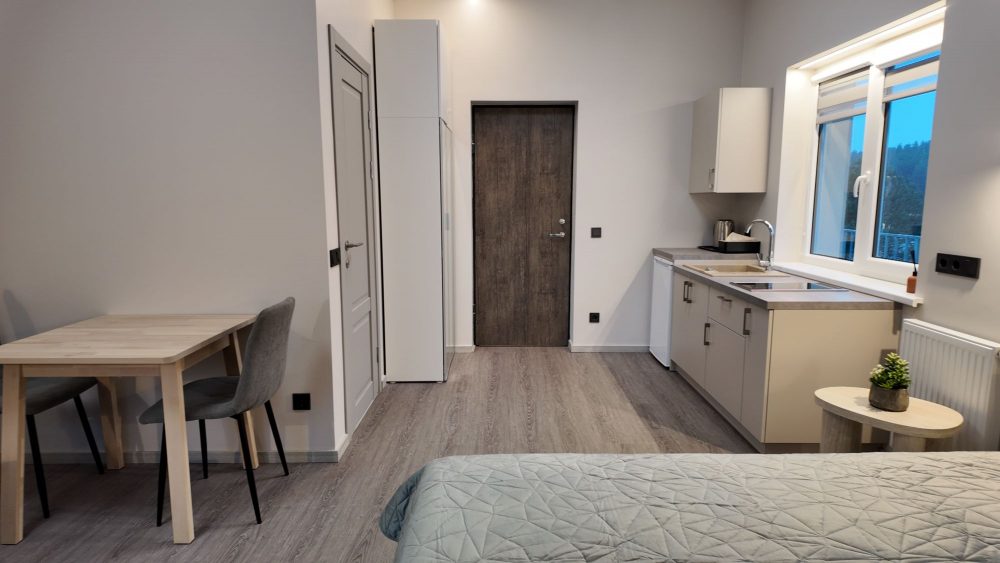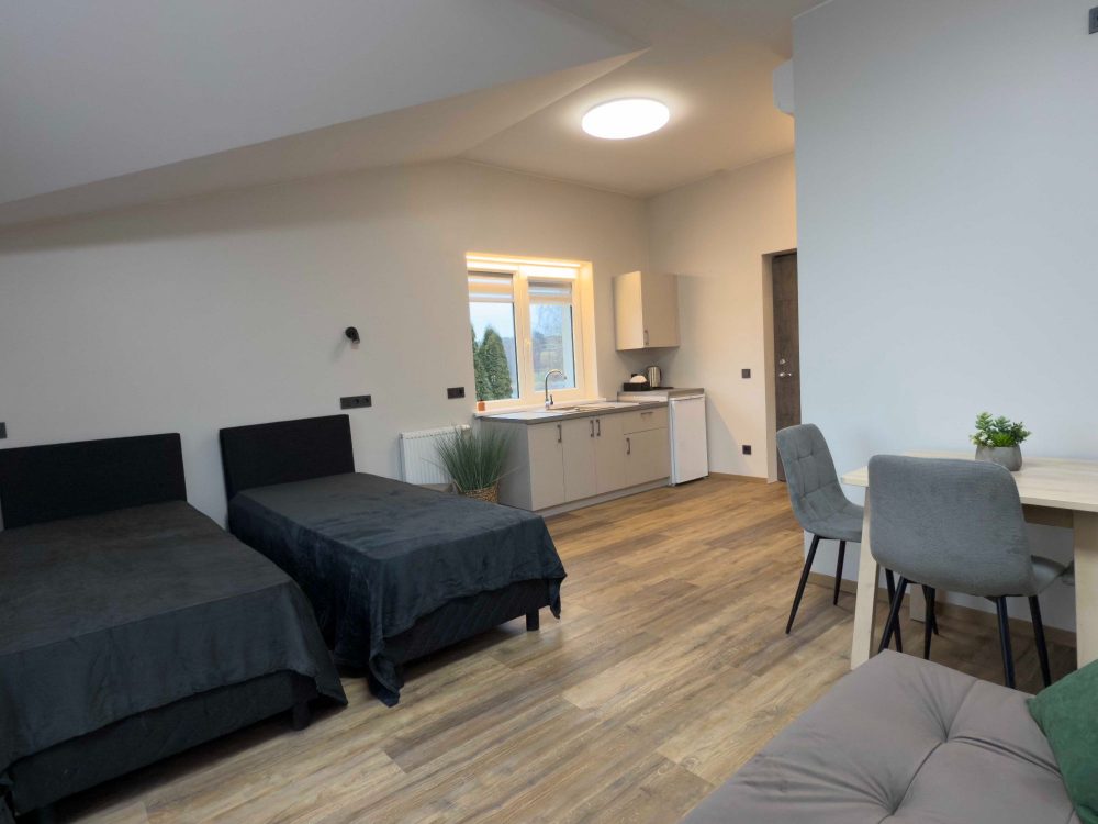 • Nakvynė iki 115 žmonių. Didžioji dalis kambarių turi asmeninius WC, dušus ir vaizdą į ežerą.