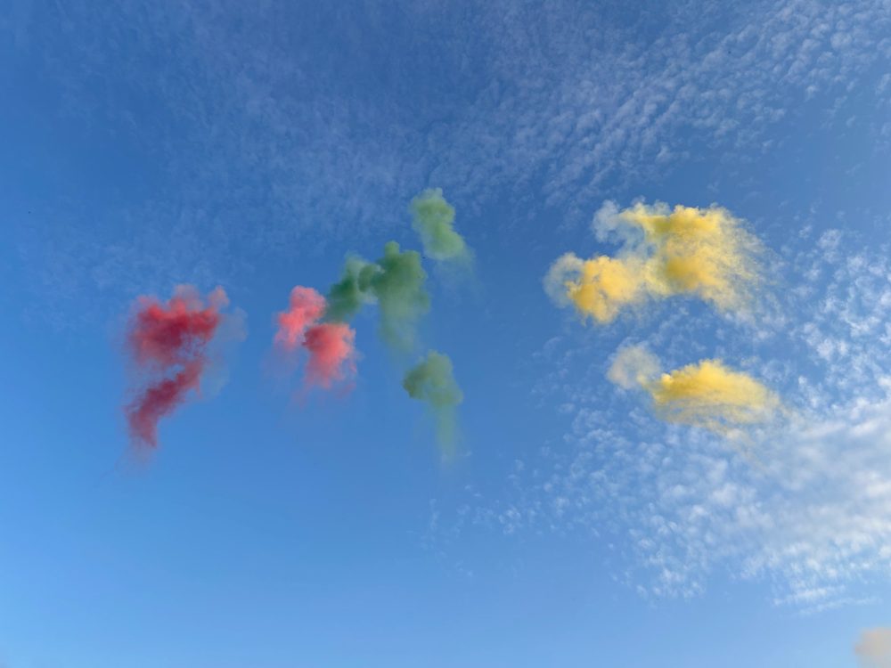 • Spalvotų dūmų salvės.