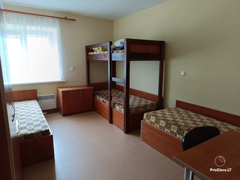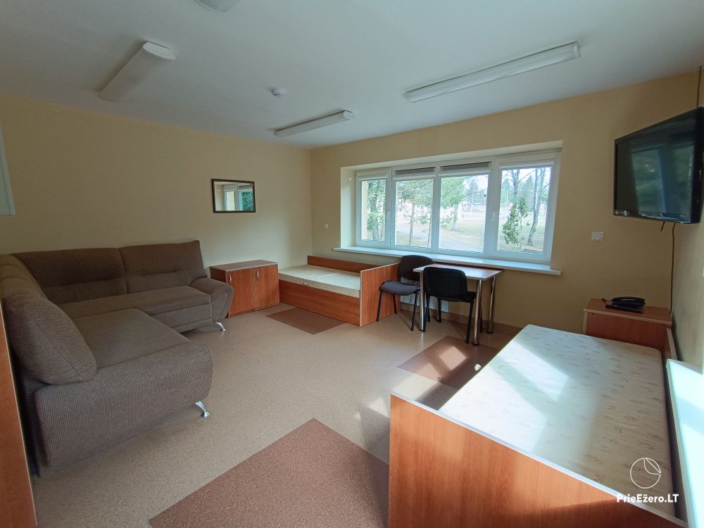 • Apgyvendinimas: apgyvendinti galime iki 70 žmonių bendrabutyje. Pastate įrengti 2-4 vietų kambariai, yra dušai. Stovyklavietėje: gali apsistoti iki 150 žmonių su palapinėmis. Yra laužavietė, lauko dušai, šašlykinės.