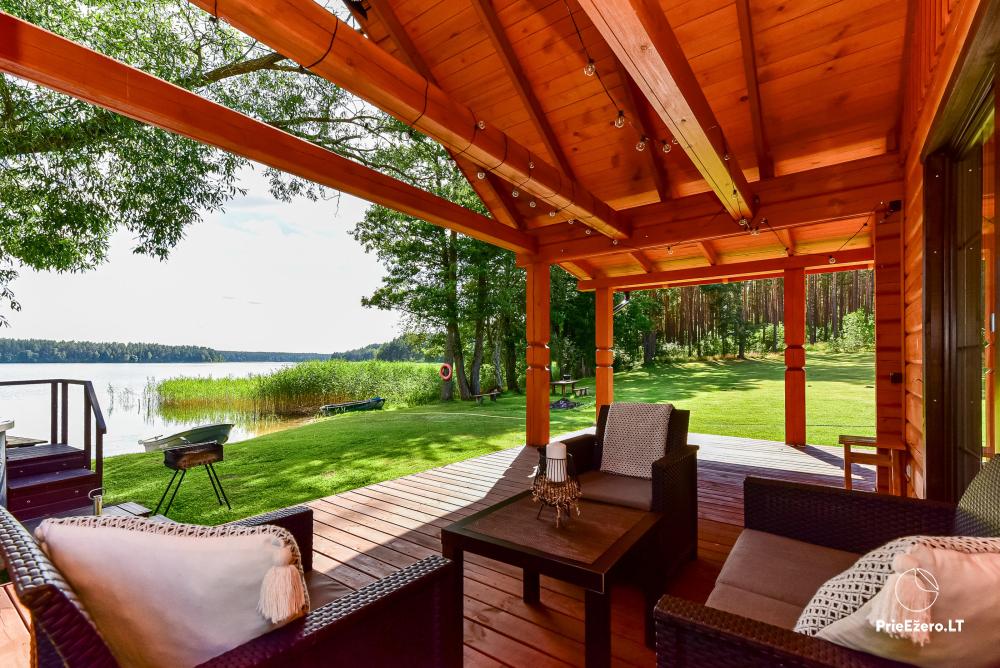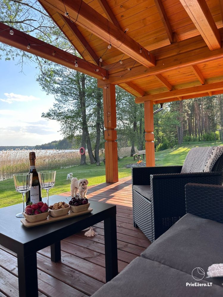 Namukas – pirtis (Nr. 1) su didele terasa yra ant ežero kranto,