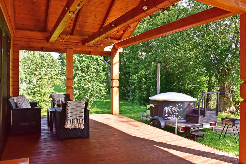 Svečiai gali mėgautis pirtimi ir lauko kubilu (už papildomą mokestį).