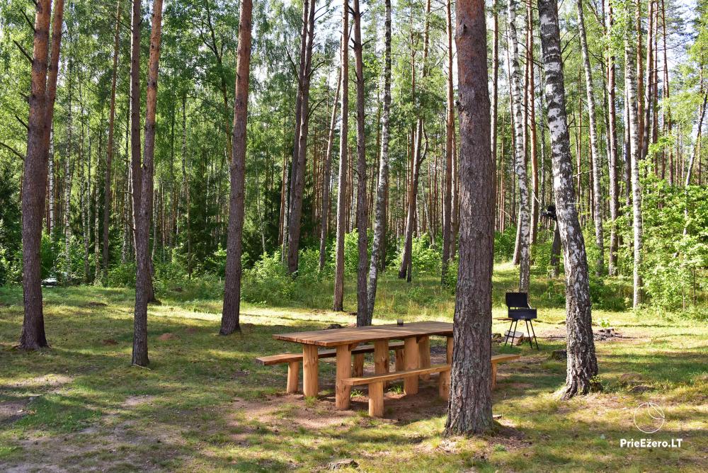 Ant Baltųjų Lakajų ežero kranto išnuomojami du nameliai bei vieta kemperiui
