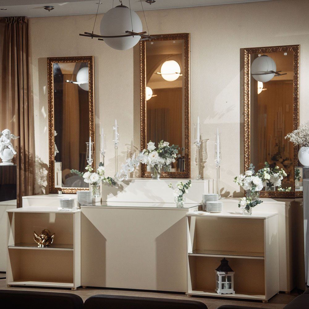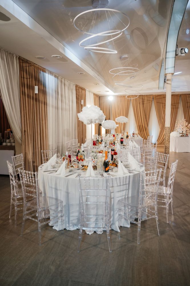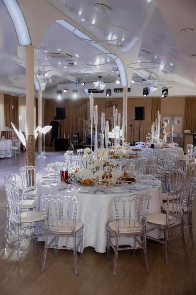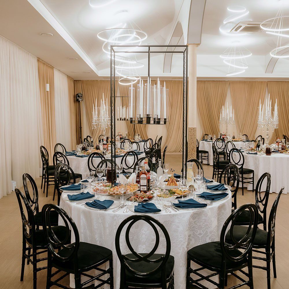 Pobūvių salė erdvi, su aukštomis lubomis, todėl sukuria lengvumo ir erdvės pojūtį. Ji universali ir lengvai pritaikoma prie bet kokio dekoro bei šventės stilistikos.