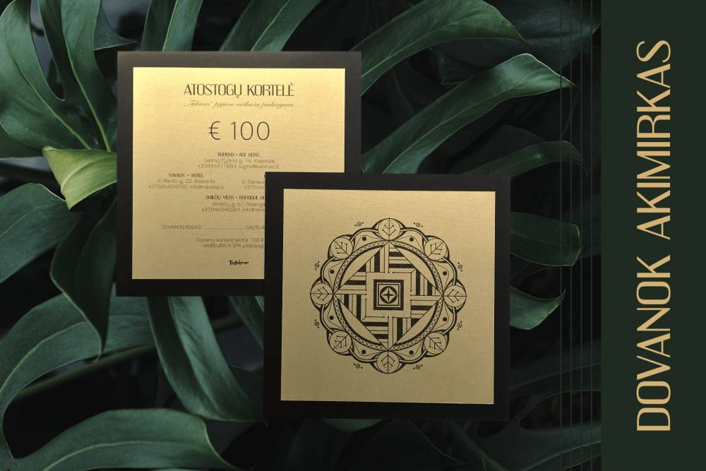 • Popieriniai dovanų kuponai: 50 € arba 100 € vertės.