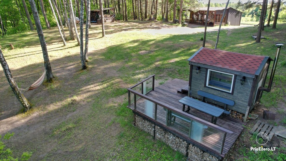 Išnuomojami du nameliai iki 12 žmonių. Yra pirtis, kubilas, privati teritorija. Prie Molėtų.