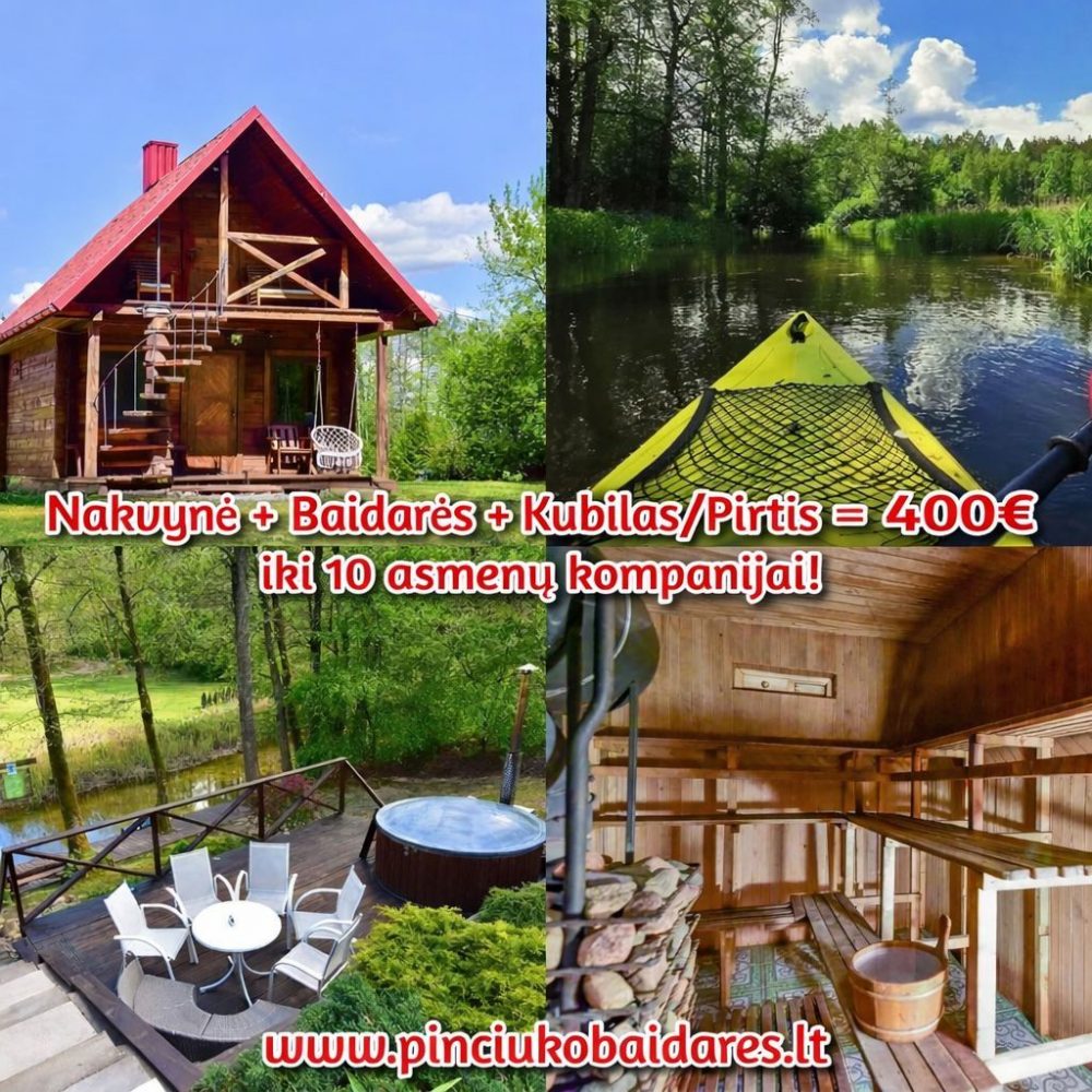 PASIŪLYMAS Pirmadienį - Ketvirtadienį VISĄ VASARĄ "Plaukimas baidarėmis + Nakvynė + Kubilas/Pirtis" = 350€ 10 asmenų kompanijai.