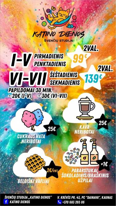 Gimtadienis, kūrybinės dirbtuvėlės ar smagus susitikimas su draugais – viskas įmanoma, kai švenčiama su KATINU!