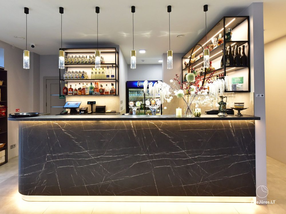 Pagal jūsų pageidavimą sustatysime stalus, surengsime kavos pertraukėles ar pietus renginio dalyviams. Kavinės salėse yra plačiaekraniai išmanieji TV.