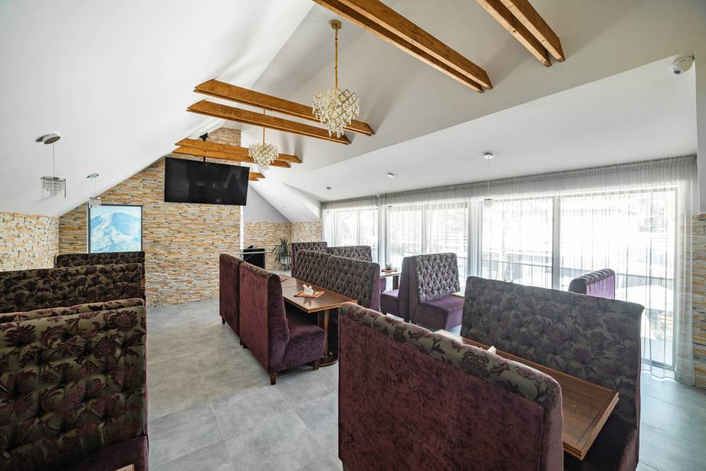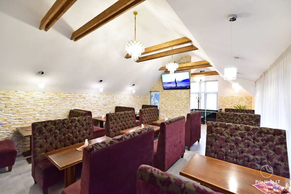 Dideliame TV ekrane galite stebėti sporto rungtynių transliacijas. Vasaros vakarais kavinėje skamba gyva muzika.