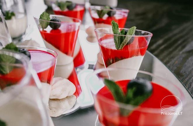 Profesionalūs restorano šefai pasirūpins užkandžiais, kava ir arbata bei gardžiais pietūmis ar vakariene pagal reginio poreikį.