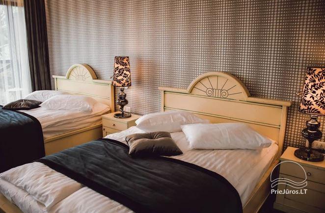 Jūsų pasirinkimui – įvairūs kambariai ir apartamentai: su terasomis, balkonais, židiniais ar sukūrine vonia (Jacuzzi). Vienu metu galime suteikti nakvynę iki 74 svečių.