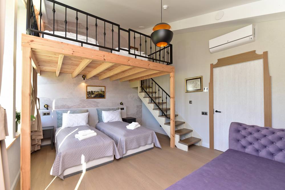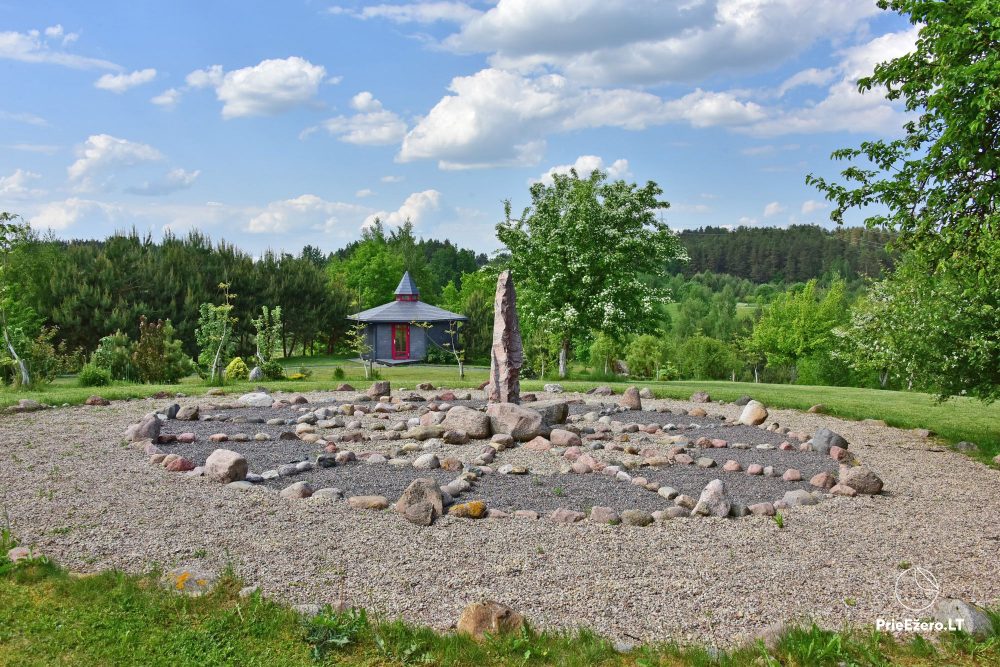 - Nakvynė iki 40 žmonių (kiekviename kambaryje – privatus dušas ir WC). Daugiau vietų nakvynei – šalia esančiame komplekse "Keliautojų namai".