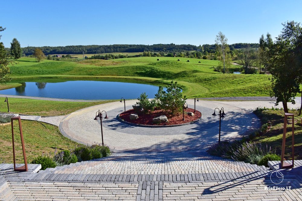 - Išskirtinis parkas su pasivaikščiojimo takeliais, akmenų labirintais, tvenkiniais ir fontanais. Šis parkas – puiki vieta vestuvių fotosesijai.