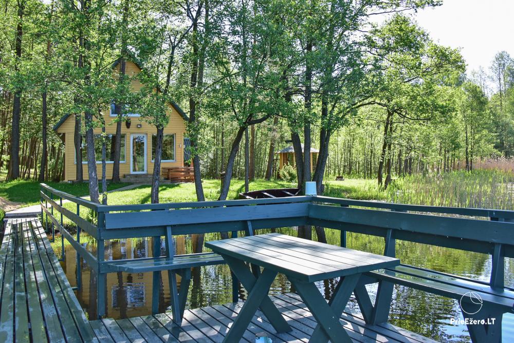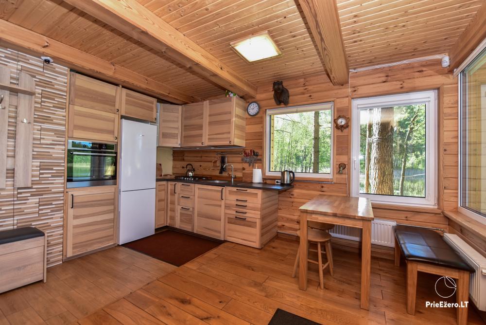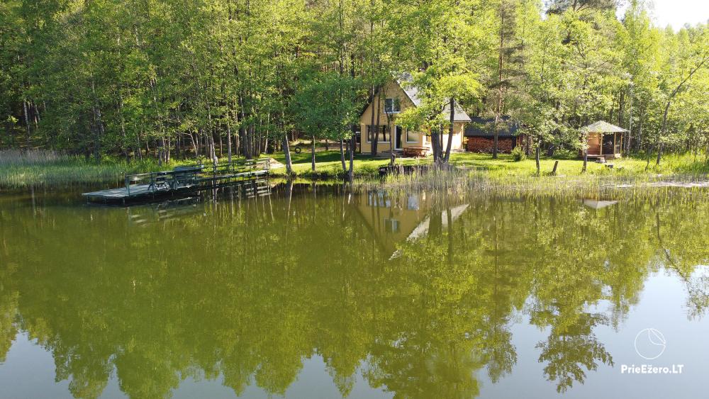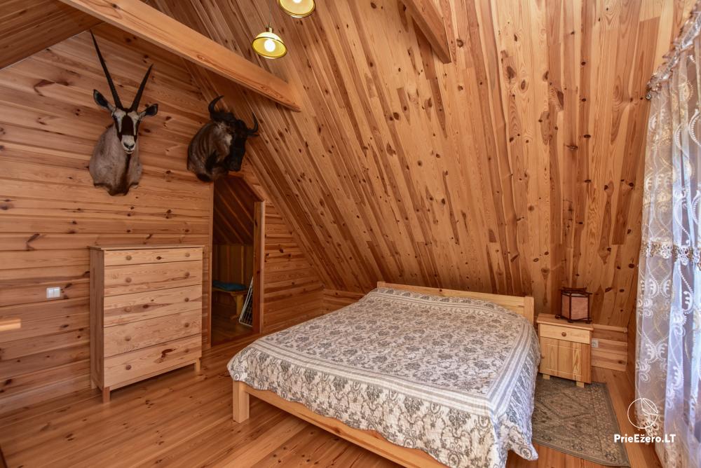 Įskaičiuota malkos pirčiai, kieto kuro katilo(namelio apšiltinimui šaltuoju sezono metu) ir barbekiu kūrenimui, medinė valtis pasiplaukiojimui/žvejybai Uolio ežere.