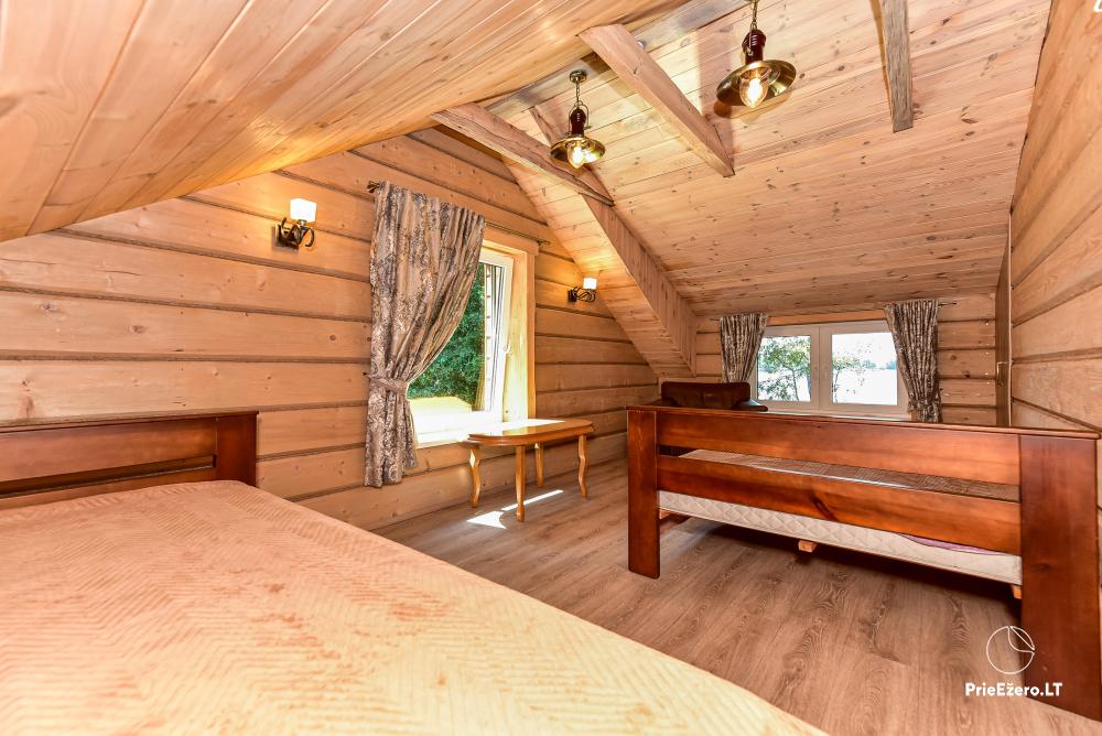 - 2 miegamieji antrame aukšte. Kiekviename iš jų – po 2 dvigules lovas.