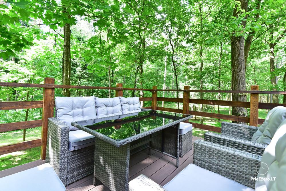 - Didelė terasa su lauko baldais ir puikiu vaizdu į mišką;