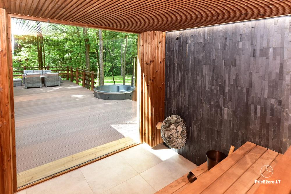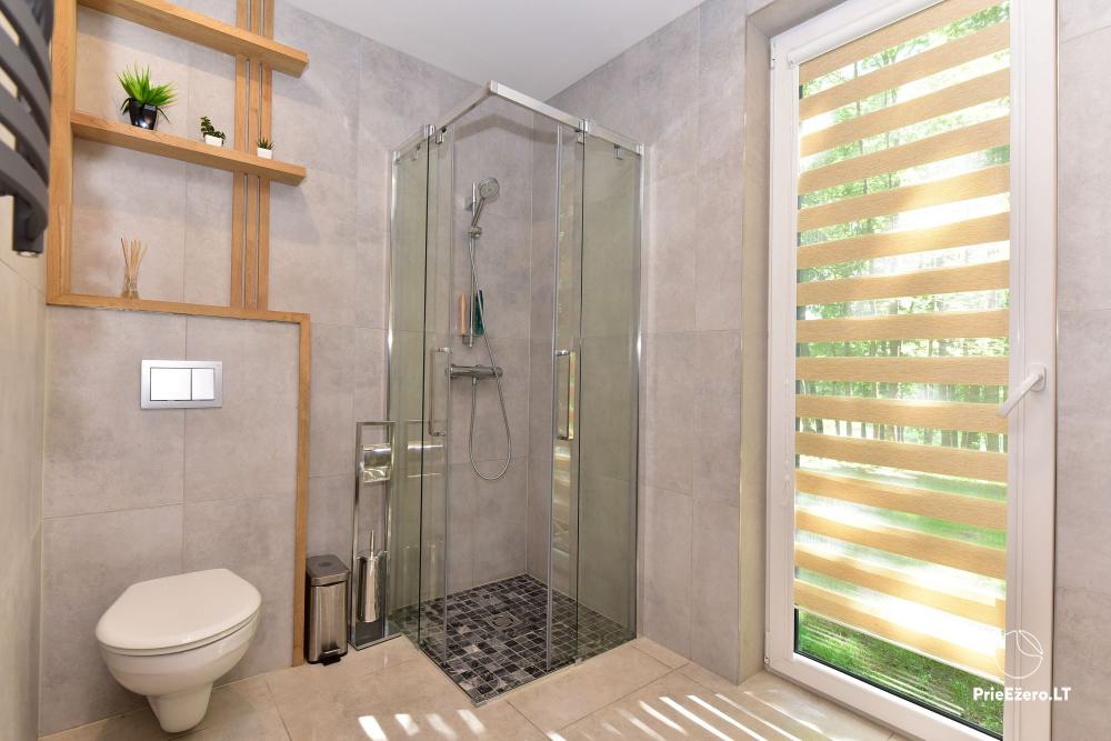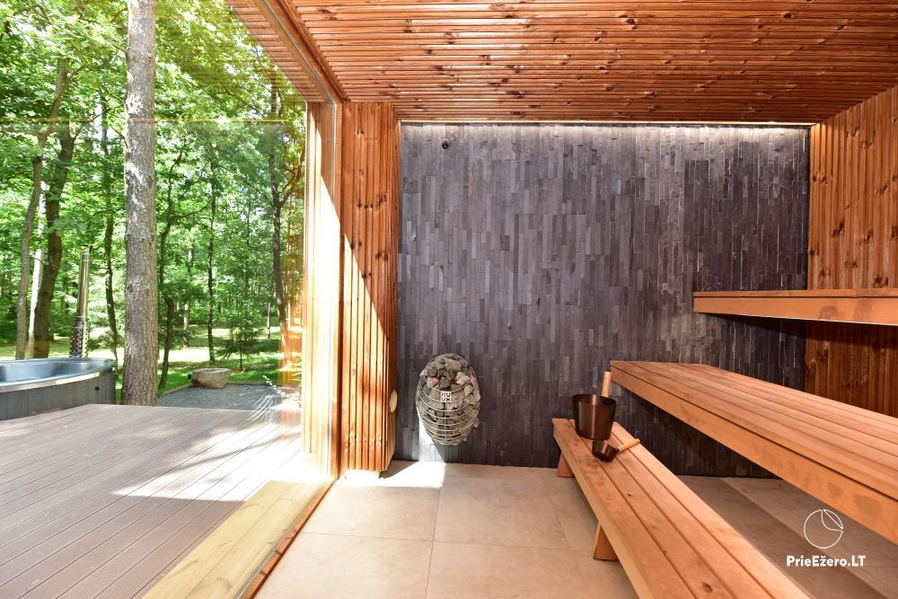 - Pirtis su vitrininiais langais ir puikiu vaizdu į mišką;
