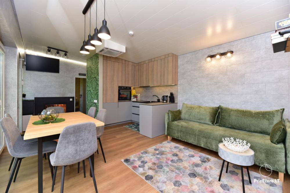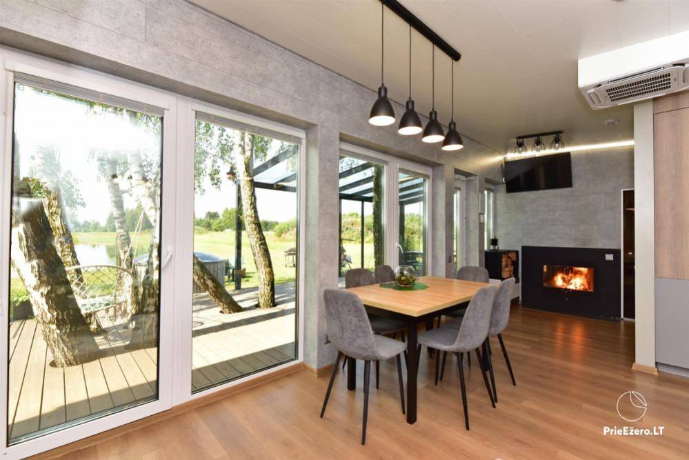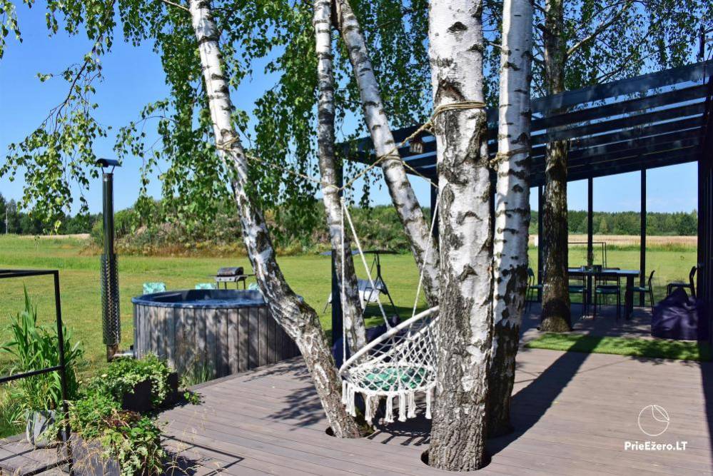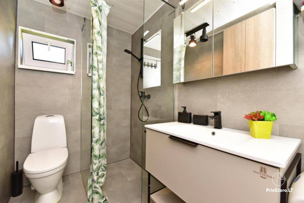 Jaukus, šiuolaikiško dizaino namelis su pirtele, kubilu ir didele terasa. <br><br>Pirtelės teritorijoje yra didelis tvenkinys (~30 a), kuriame vasarą galite žvejoti, maudytis, o žiemos metu čiuožinėti pačiūžomis ar išsimaudyti po pirties.<br><br>Namelyje 4 miegamosios vietos. Yra galimybė apsigyventi su augintiniu, pranešus apie tai išankstiniu skambučiu. Namelis skirtas ramiam šeimos ar poros poilsiui, taip pat nedidelėms draugų kompanijoms. Pirties patalpa skirta iki 4-6 asm.<br><br>Namelyje yra visi patogumai jūsų poilsiui.<br><br>Mielai lauksime jūsų atvykstant!