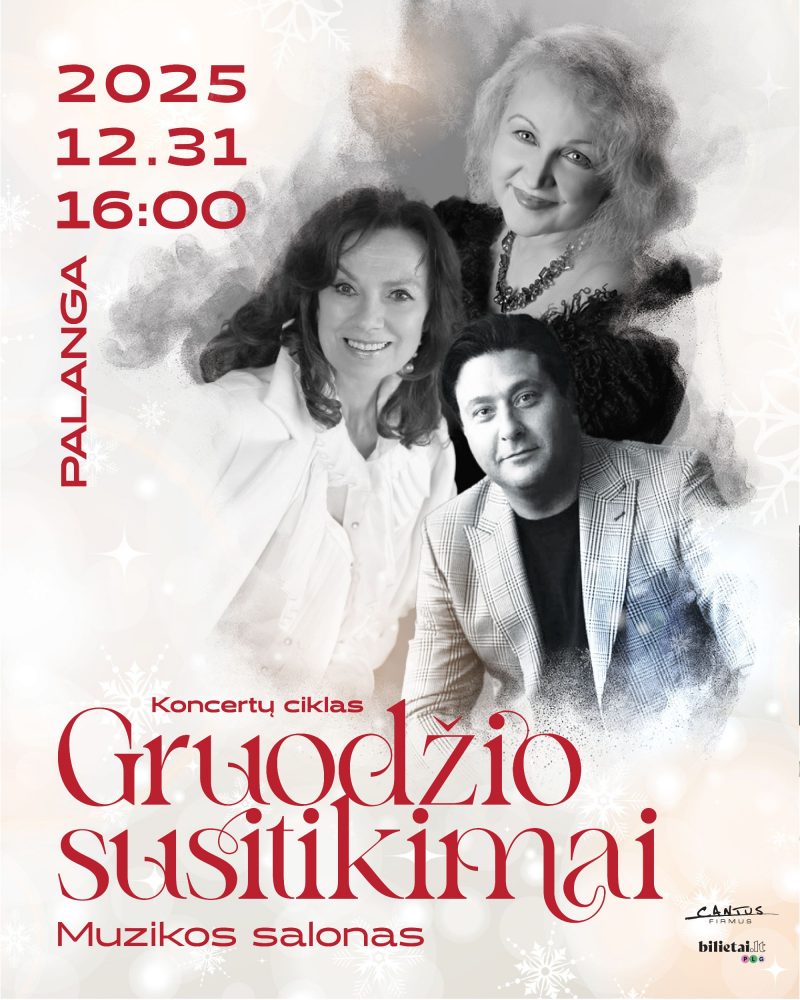 Į Palangos gintaro muziejų sugrįžta tradicinis metų sandūros koncertas – Senųjų metų palydėjimo ir Naujųjų sutikimo šventinis vakaras. Programa kviečia pasinerti į muzikinį ir literatūrinį dialogą, pajusti dvarų meno salonų dvasią, kur kūrybinė žaismė ir improvizacijos dera su gyvenimo prasmės apmąstymais. Muzikos programą lydės pasakojimai, legendos, netikėti atradimai ir paslapčių atskleidimai – visa tai, kas sudaro meno salonų žavesį. Skambės pamėgti kompozitorių G. Verdi, J. Strausso, A. Lloyd Webberio ir kitų muzikos genijų kūriniai