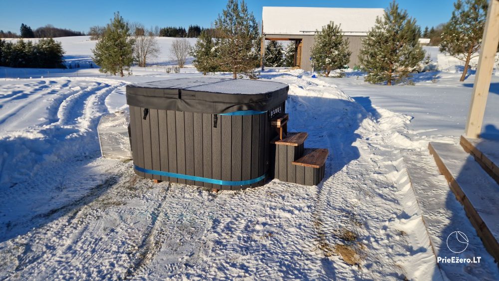 Nuomojamas namelis su kubilu ant Virintų ežero kranto