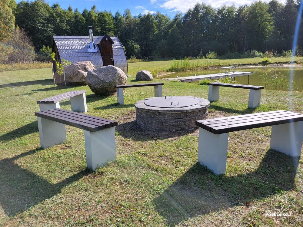 ☆ Moderni laužavietė su dangčiu, kabliu puodui pakabinti, stovu maisto gaminimui. Aplink laužavietę - patogūs suoliukai;