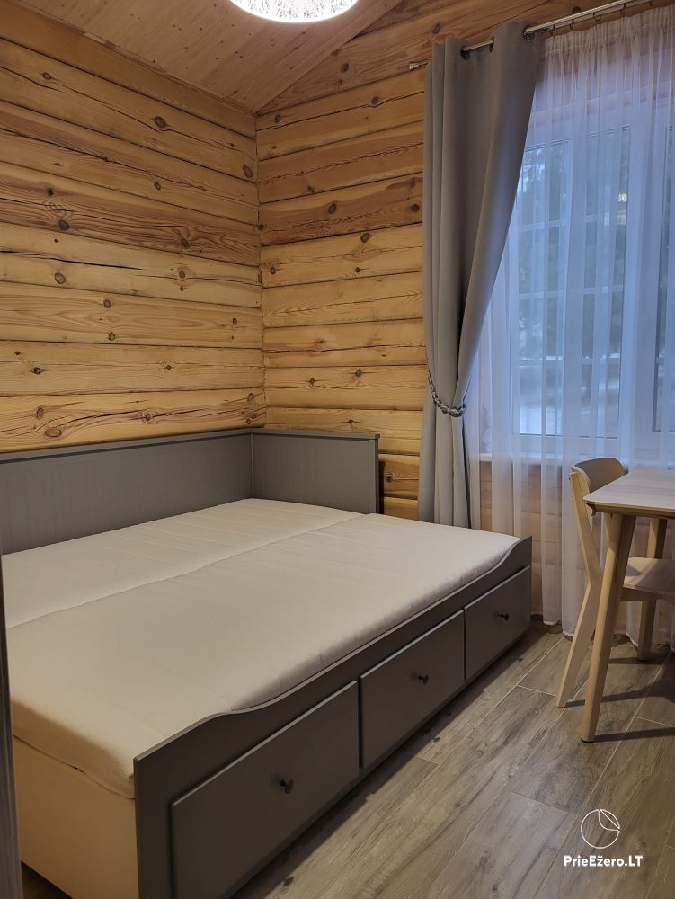 ☆ Rąstinis jaukus namas, pušyne, su nakvyne iki 6 svečių (2 atskiri kambariai po vieną dvigulę lovą ir svetainėje dvigulė sofa-lova);