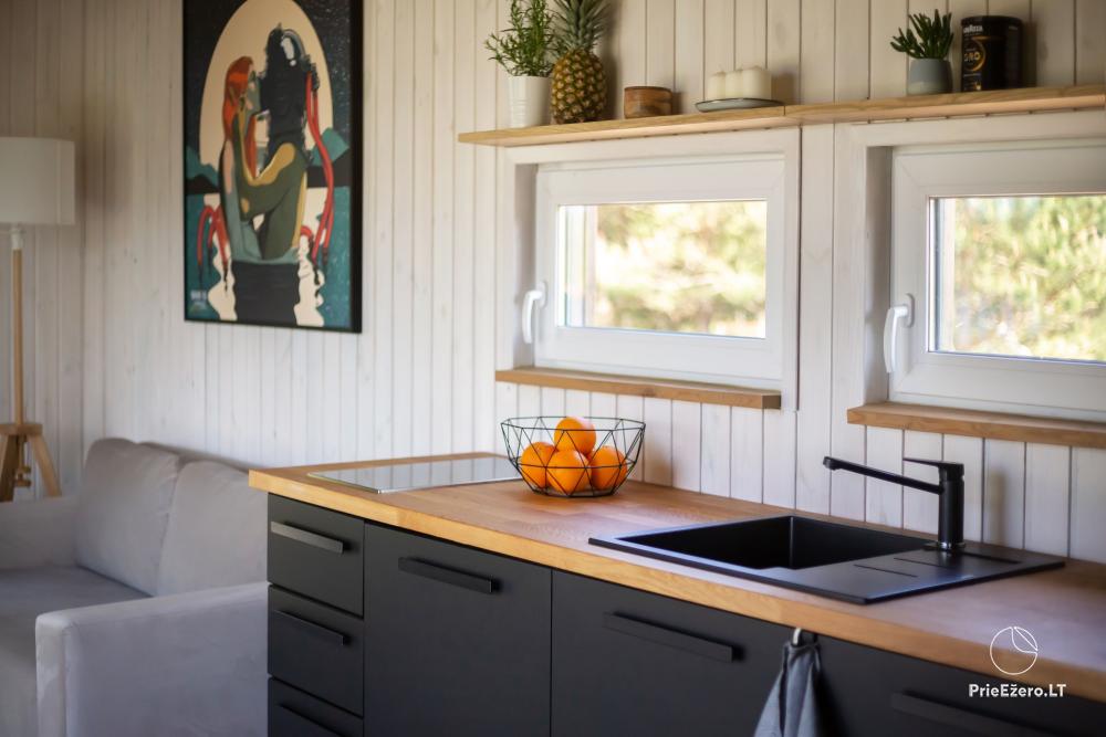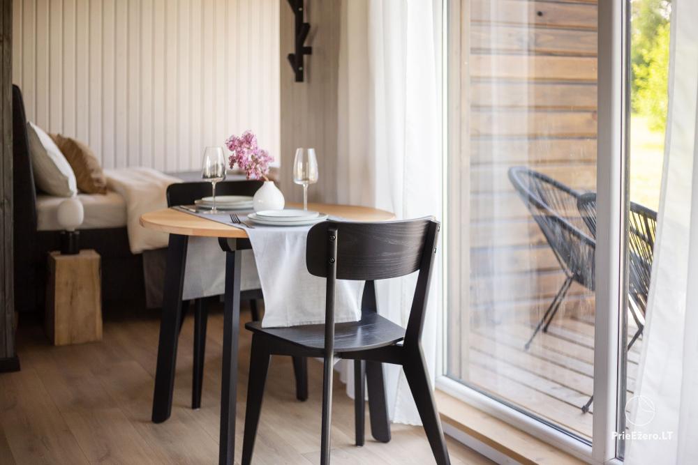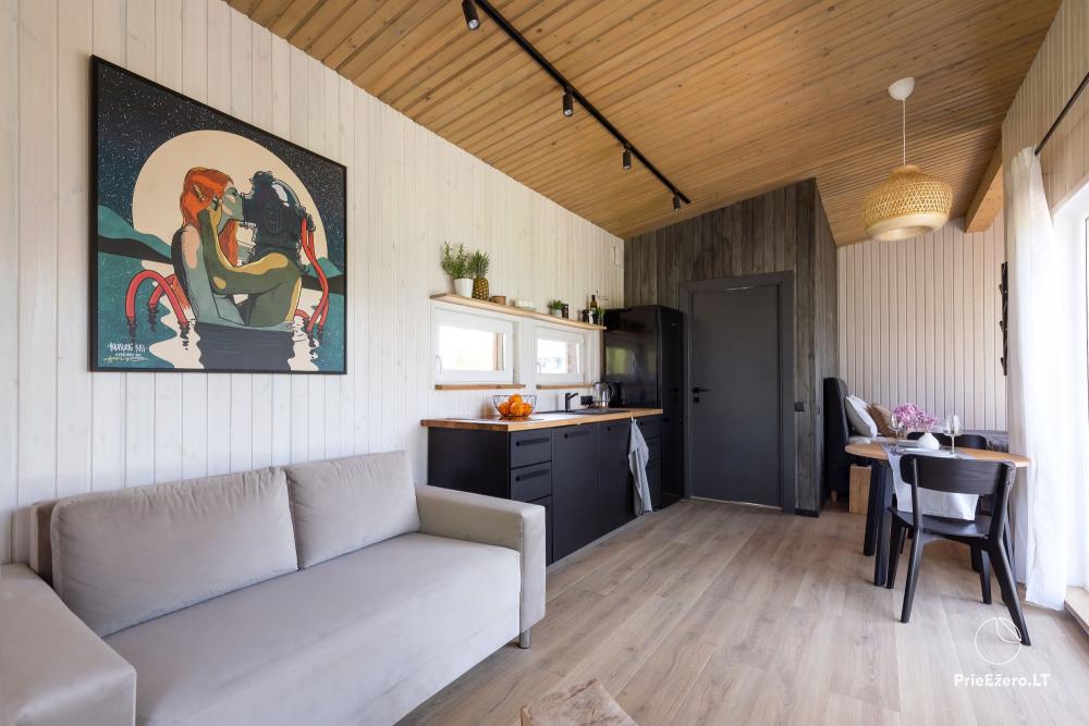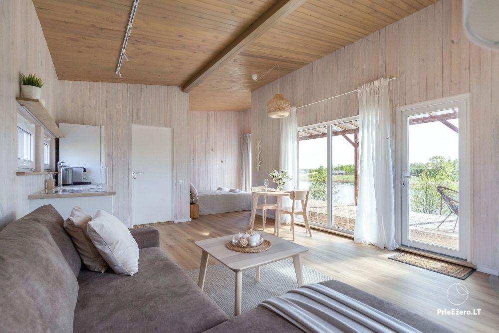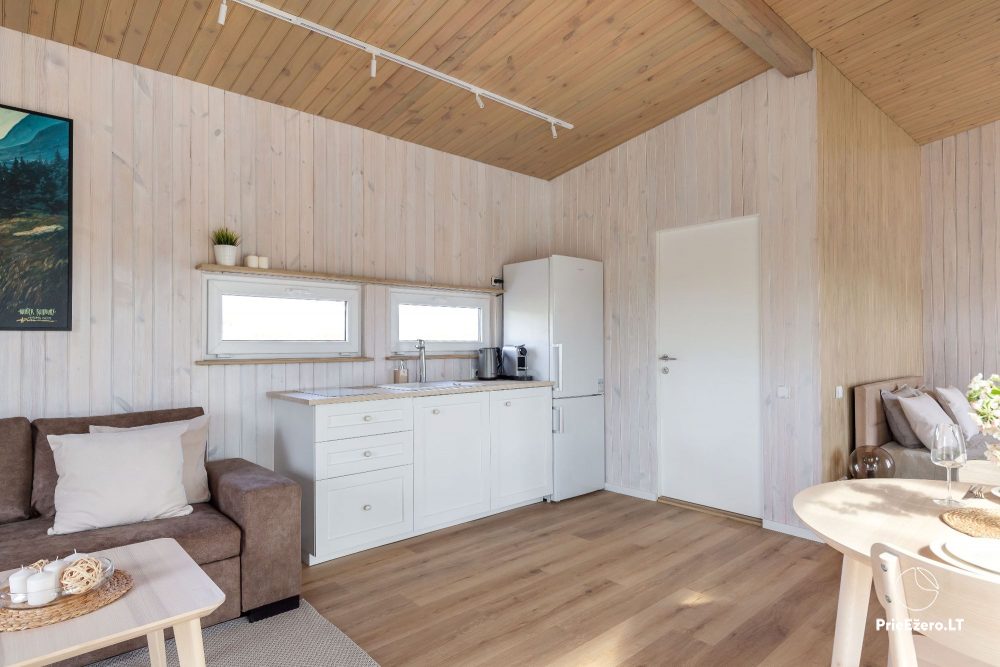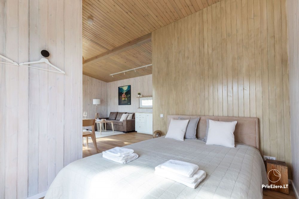 Apsistoję namelyje mėgausitės net 30 kv. m. apartamentais, kuriuose įrengta erdvi virtuvė, valgomasis, miegamojo zona su komfortiška dvigule lova, vonios kambarys su dušo kabina.