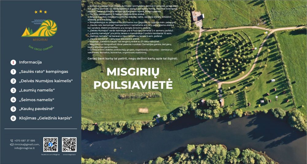 MISGIRIAI "Saulės ratas": nameliai, kempingas, erdvės šventėms ir renginiams