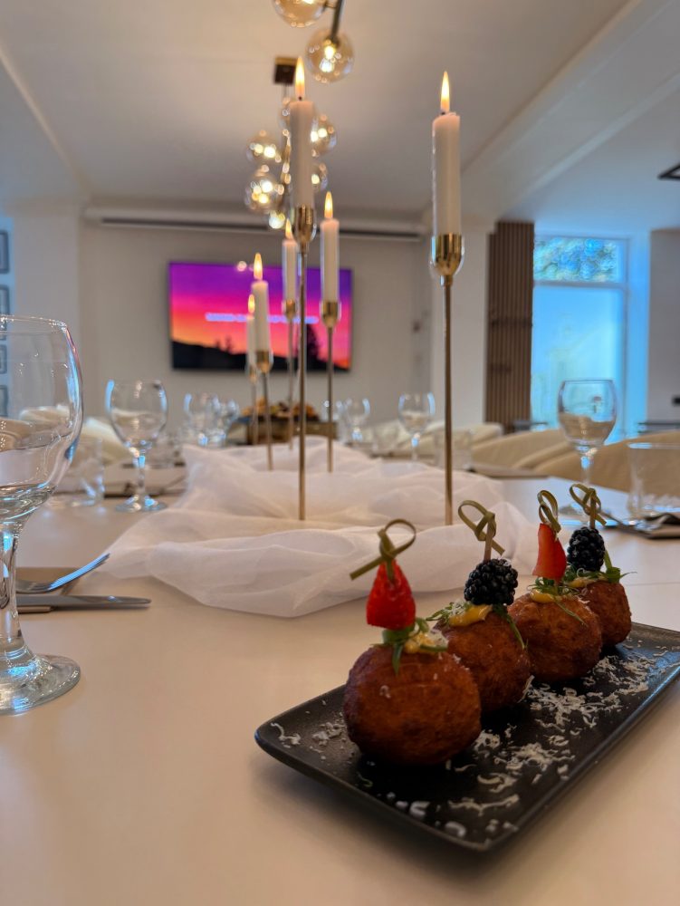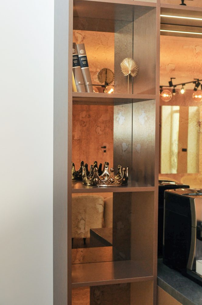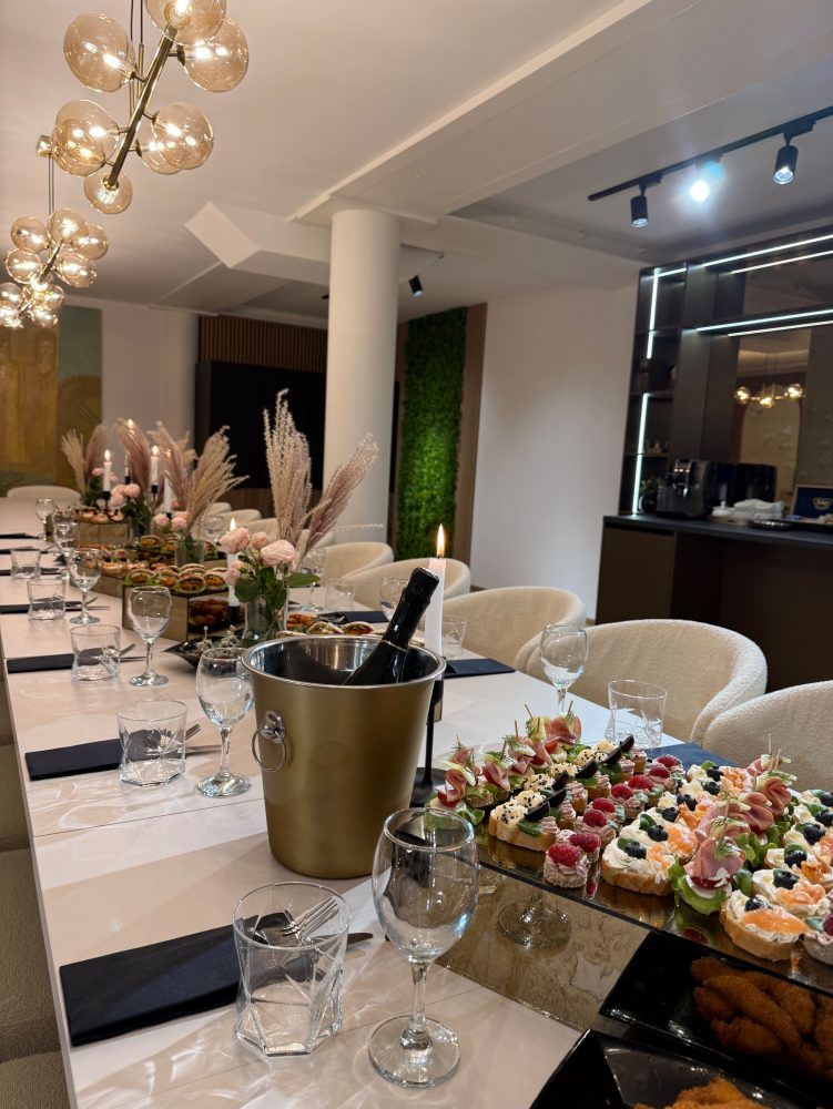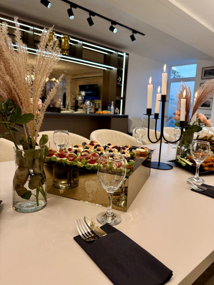 Viskas apgalvota: indai, taurės, padėklai ir serviravimas pritaikyti prie erdvės stiliaus, desertų zonos, apšvietimas, komfortas ir detalės.
