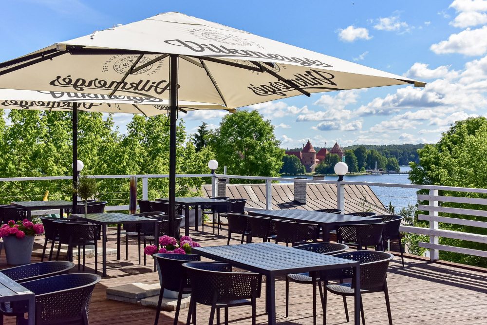 Antrojo aukšto terasoje atsiveria užburiantys vaizdai į Trakų pilį, Galvės ežerą.