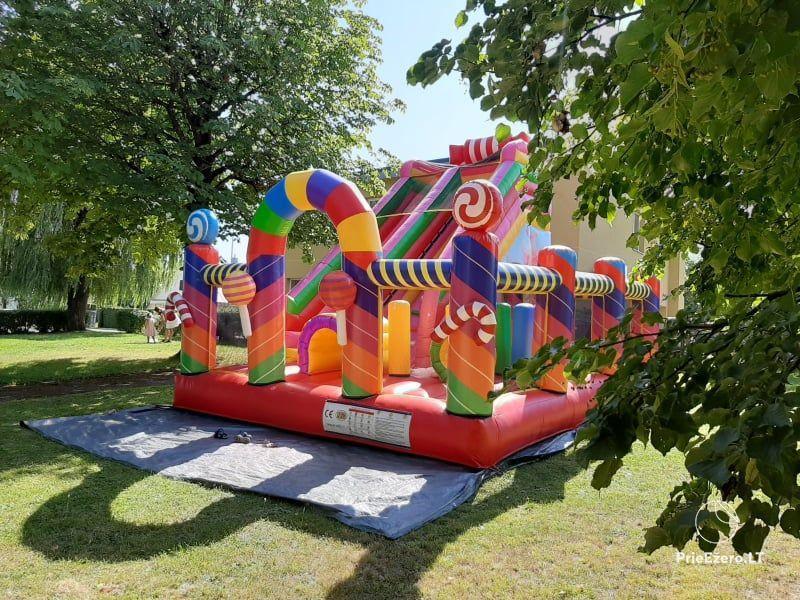 Šventėms nuomojamas paviljonas (12x6 metrų) su patogiais stalais ir kėdėmis.