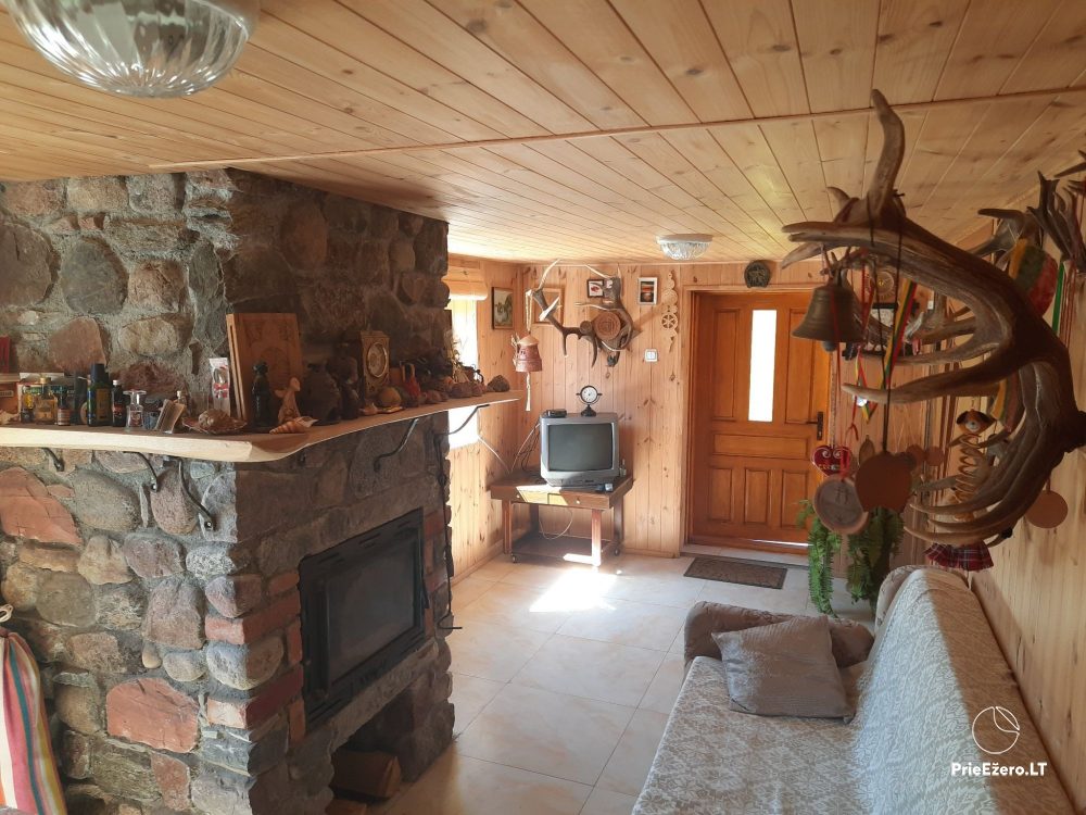 - Dušas, WC, šiltas ir šaltas vanduo, židinys, pirtis.