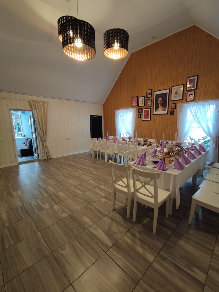 Galime surengti Jūsų vestuvių ar krikštynų šventę su maistu, aptarnavimu, papuošimais. Esame lankstūs ir dėmesingi Jūsų norams ir pageidavimams :). Pas mus labai švaru, gražu, šviesu ir jauku. Galima imti tik banketinę salę be pirties. Labai laukiame svečiuose :) Atskira įstiklinta terasa saldumynų ir alaus stalams ar ramiam pasisėdėjimui.