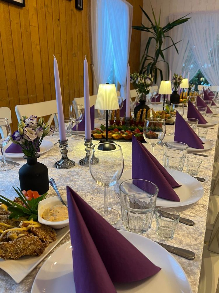Galime surengti Jūsų vestuvių ar krikštynų šventę su maistu, aptarnavimu, papuošimais. Esame lankstūs ir dėmesingi Jūsų norams ir pageidavimams :). Pas mus labai švaru, gražu, šviesu ir jauku. Galima imti tik banketinę salę be pirties. Labai laukiame svečiuose :) Atskira įstiklinta terasa saldumynų ir alaus stalams ar ramiam pasisėdėjimui.