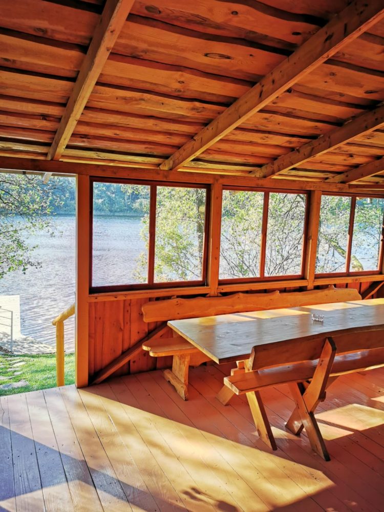 Sodyboje atskiri rąstiniai nameliai su visais patogumais, atskiromis virtuvėmis, atskirais lieptais, valtimi, privačiomis erdvėmis.