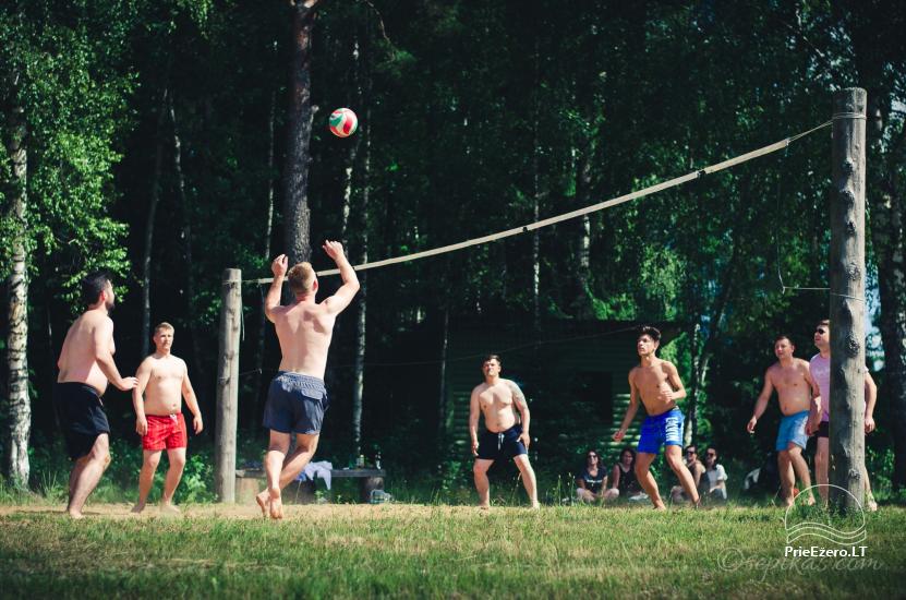 Aktyvaus sporto mėgėjams prie miško įrengta sporto aikštelė tinkliniui ir krepšiniui.