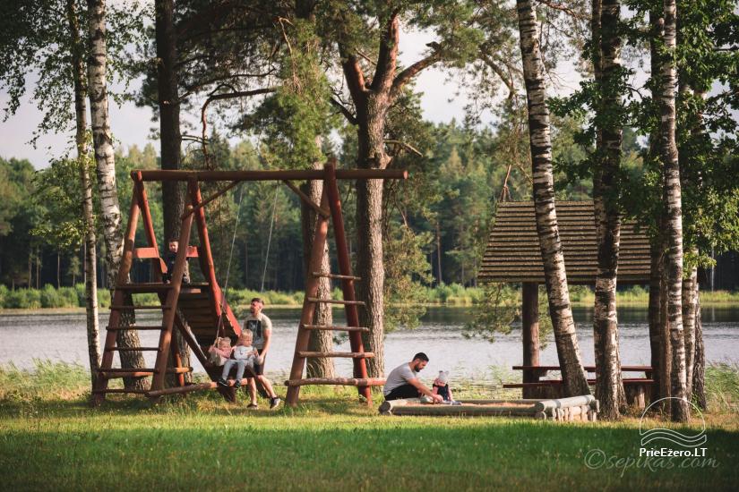 Nuomojamose pirtyse jūs galite pasinaudoti visais pirties teikiamais malonumais, po to atvėsti ežero vandenyje ar mažesniame artimų žmonių rate atšvęsti įsimintą datą. Poilsio nameliai pastatyti ant ežero kranto, su mini virtuve, indais. Visi nameliai yra skirtingos stilistikos, todėl galėsite pasirinkti labiausiai Jums patinkantį.