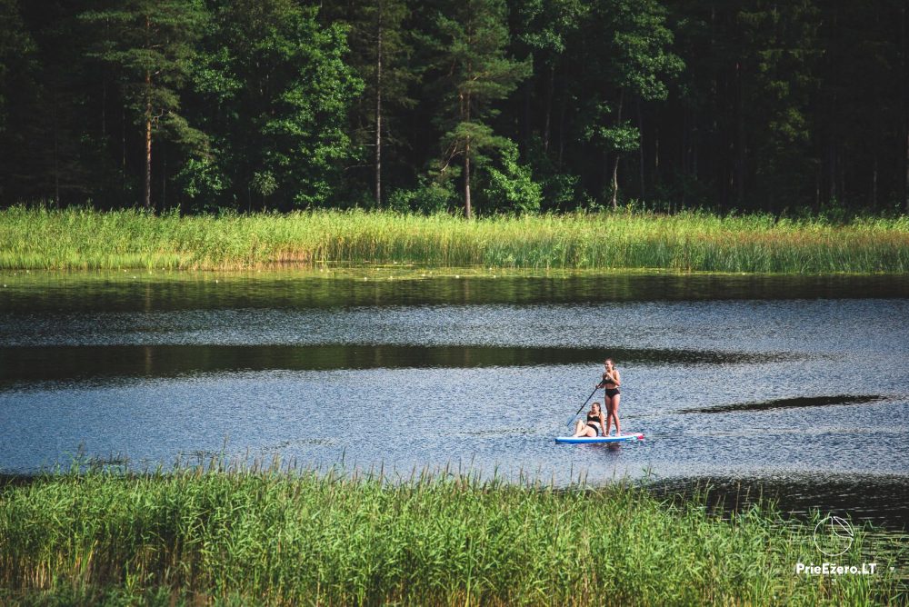 Galima pasiplaukioti išsinuomoti valtį, irklentes, baidares.