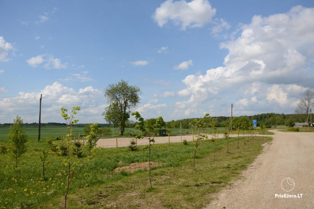 Sodyboje yra didelis erdvus kiemas, graži ir jauki aplinka, erdvi pavėsinė, kubilas, tvenkinys, tinklinio aikštelė, sūpynės vaikams bei 2 automobilių stovėjimo aikštelės.