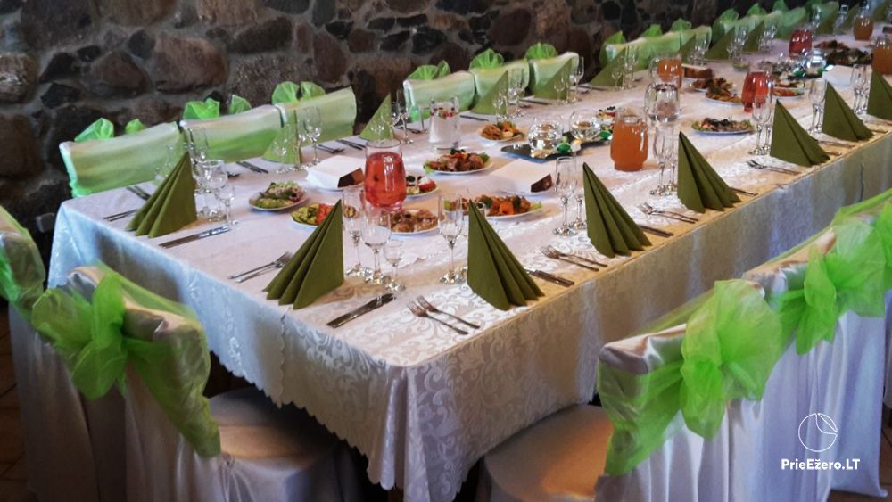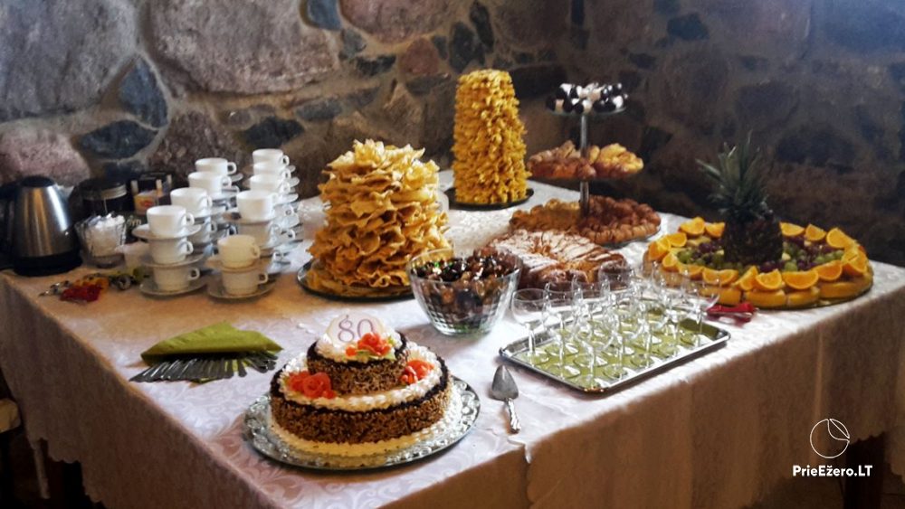 Pagal išankstinį užsakymą organizuojamas pilnas maitinimas, dekoravimas, pasirūpinama indais, patalyne, rankšluosčiais.