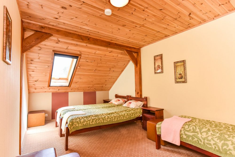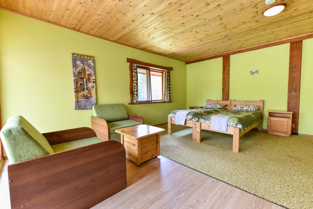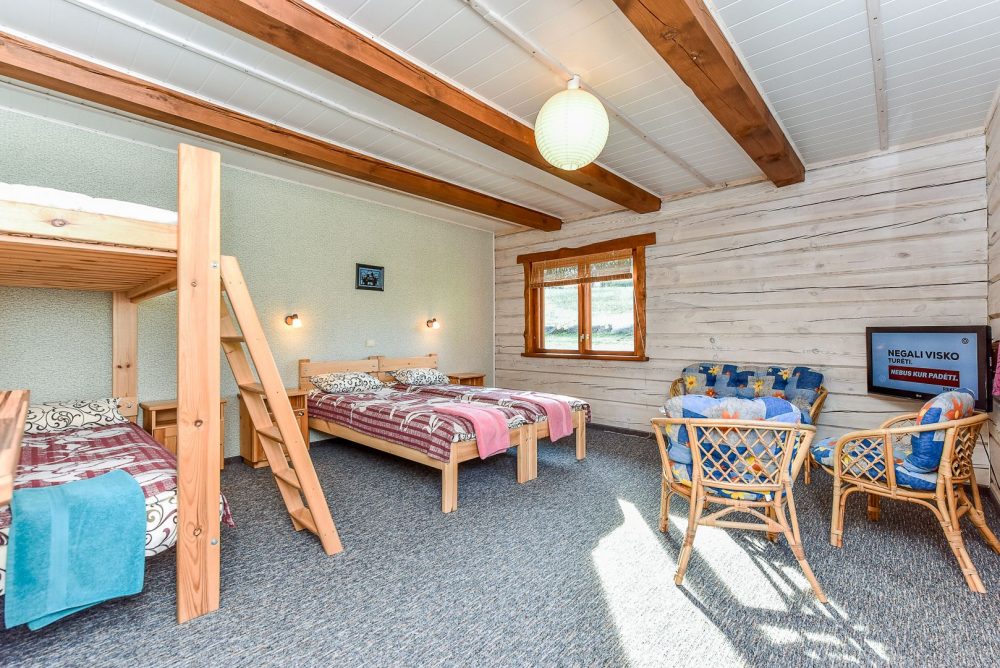 Dviejuose atskiruose namuose įrengti šilti, jaukūs kambariai su visais patogumais, įrengta bendra virtuvė ir dvi atskiros virtuvėlės su visa įranga bei indais.