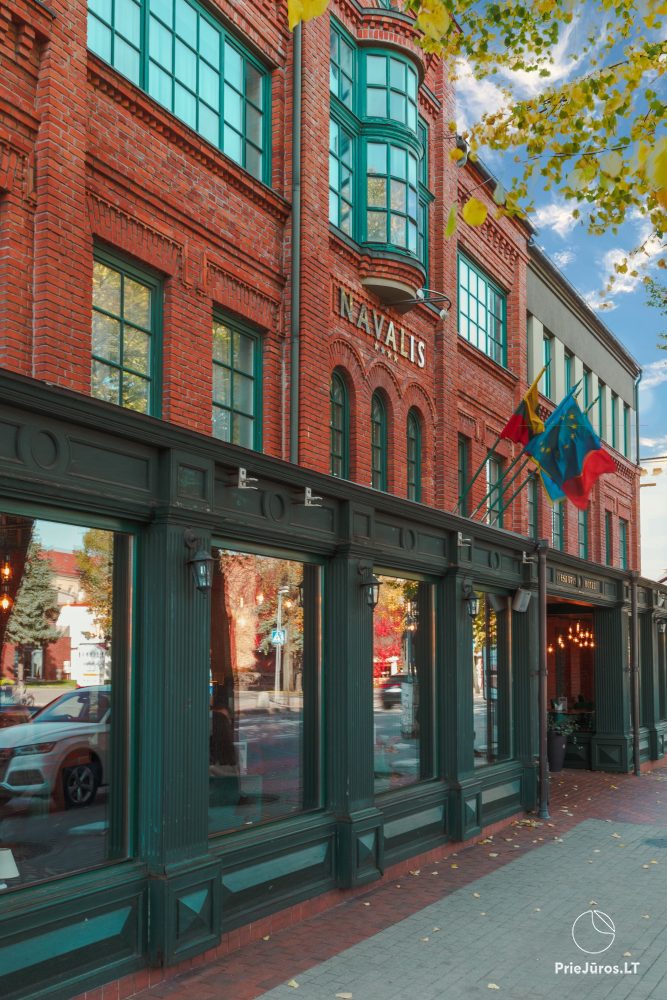 Viešbučio „NAVALIS“ restoranas - tai elegantiška aplinka, patogi lokacija miesto centre. Šefo Tomo Petriko patiekalai orientuoti į šiuolaikinį skonį, kokybiškus ingredientus ir subalansuotą mitybą. Restorano atmosfera tinka tiek poilsiui, tiek susitikimams su verslo partneriais ar klientais. Verslo pietūs tiekiami restorane nuo 11.30 - 15.00 val. Džiaugsimės galėdami prisidėti prie Jūsų švenčių: įmonių vakarėlių, dalykinių pietų ar kitų proginių renginių planavimo ir įgyvendinimo.