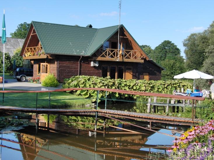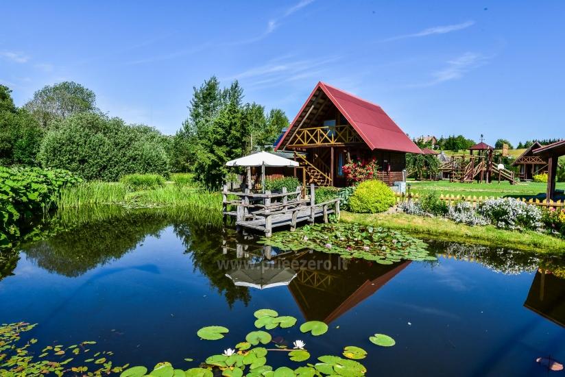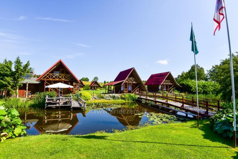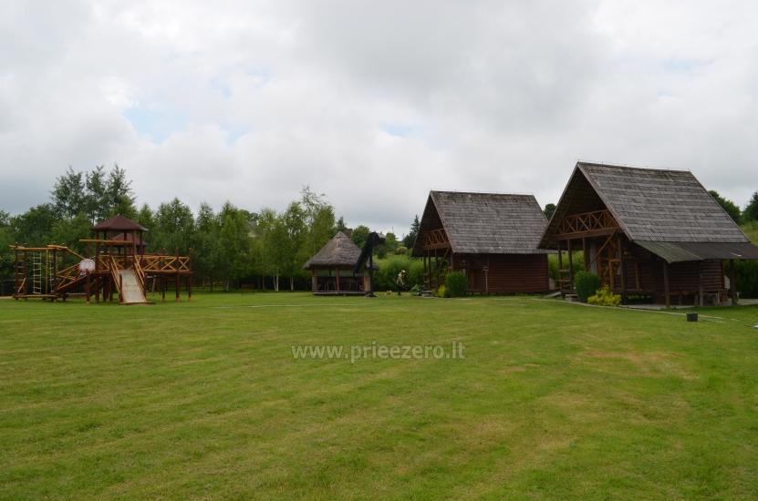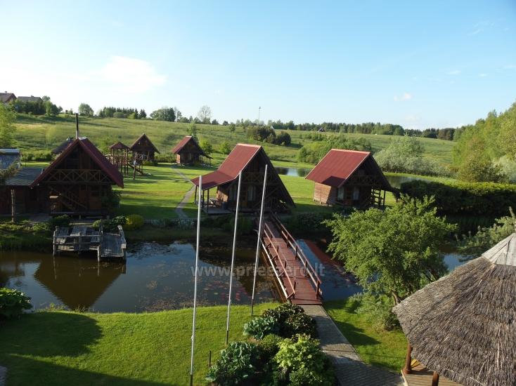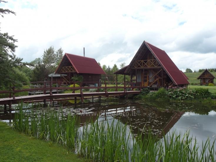 Mūsų sodyboje Jūsų laukia keturviečiai dviejų kambarių nameliai su visais patogumais, 30 vietų salė su židiniu, pirtis, virtuvėlė, biliardas, lauko žaidimų aikštelės suaugusiems ir vaikams, žuvingi tvenkiniai su valtele, vandens dviratis.