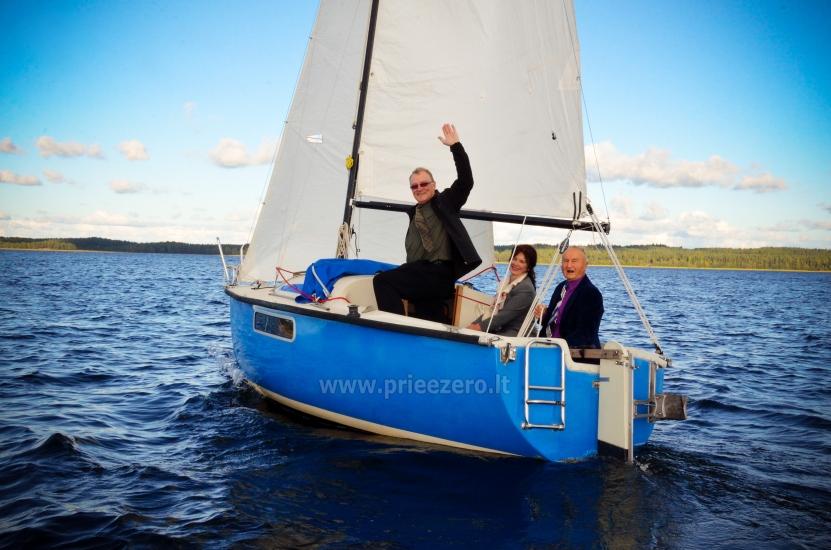 Sodybos šeimininkai - aktyvūs buriuotojai - Jums pasiūlys ekskursiją burlaiviu po ežerą ir salas su gido paslaugomis, grupelėmis iki 8 asmenų.